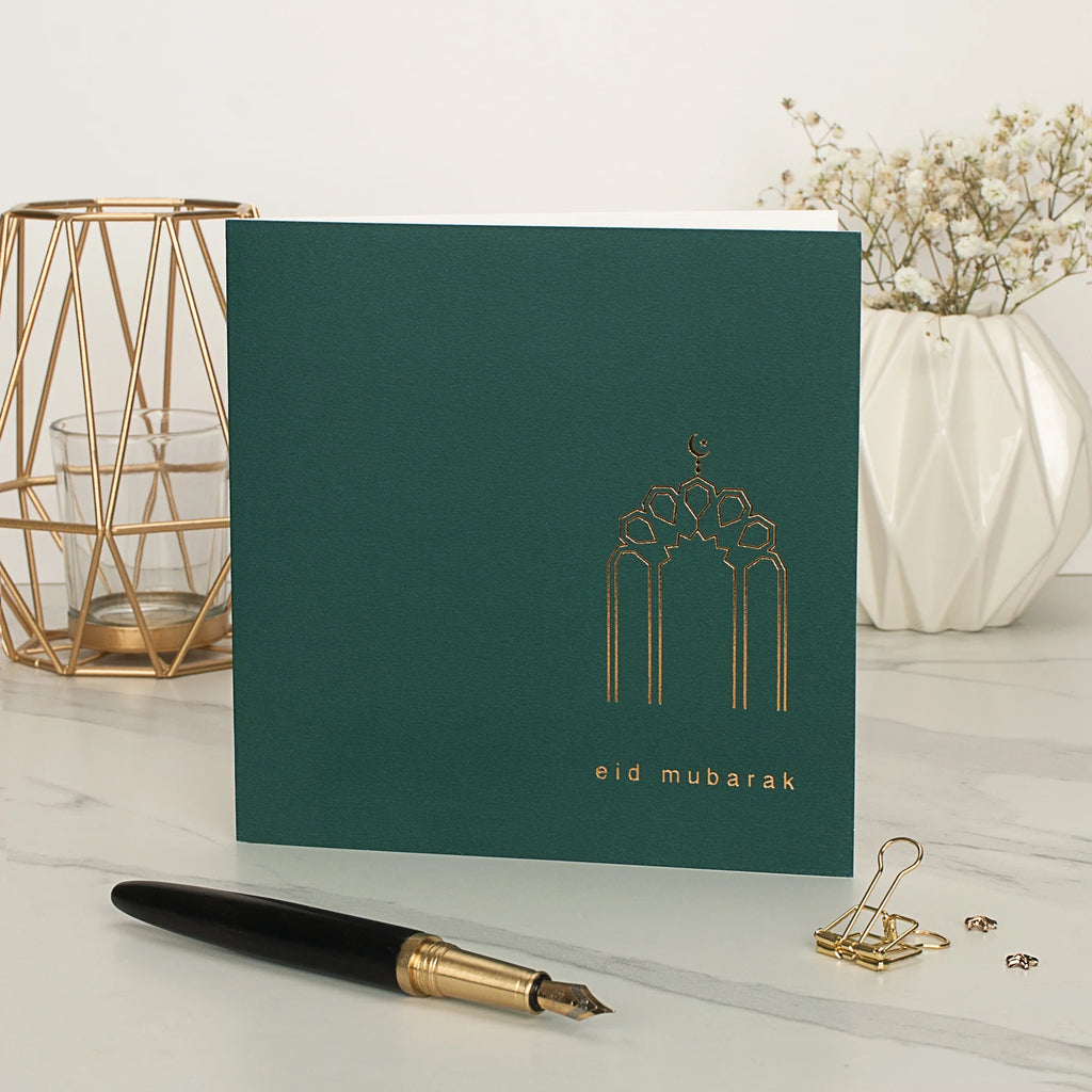 Eid Mubarak Gold Foiled Greeting Card in Deep Green