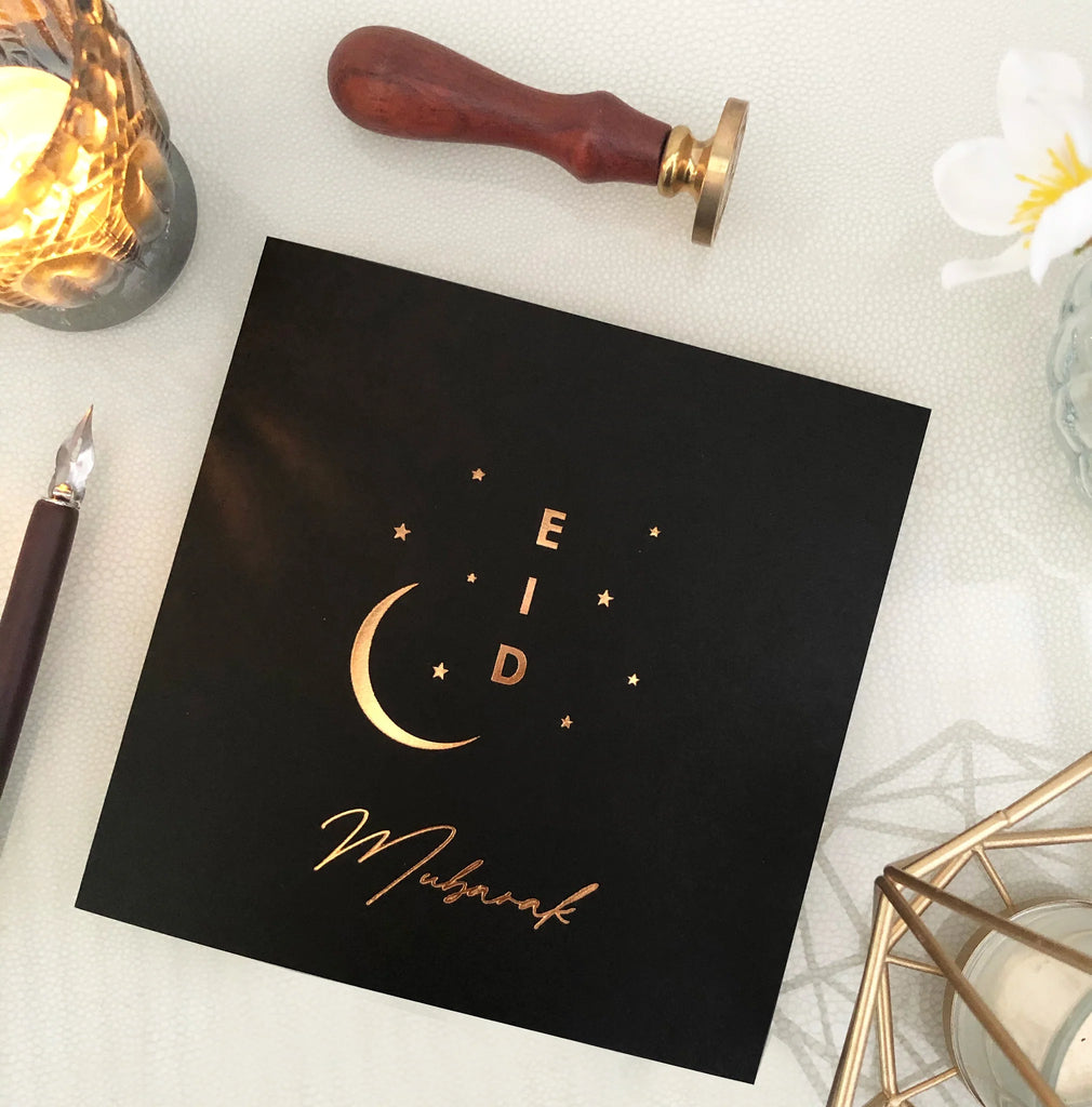 Eid Mubarak Gold Foiled Greeting Card in Black