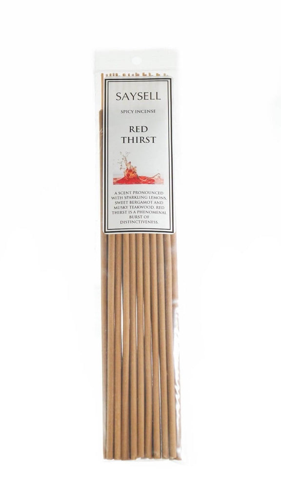 Red Thirst Spicy 8" Incense Sticks Agarbatti Long Burning x 20 by Saysell A scent pronounced with sparkling lemons, sweet bergamot and musky teakwood, Red Thirst is a phenomenal burst of distinctiveness.Red Thirst is a fragrance that possesses a w...