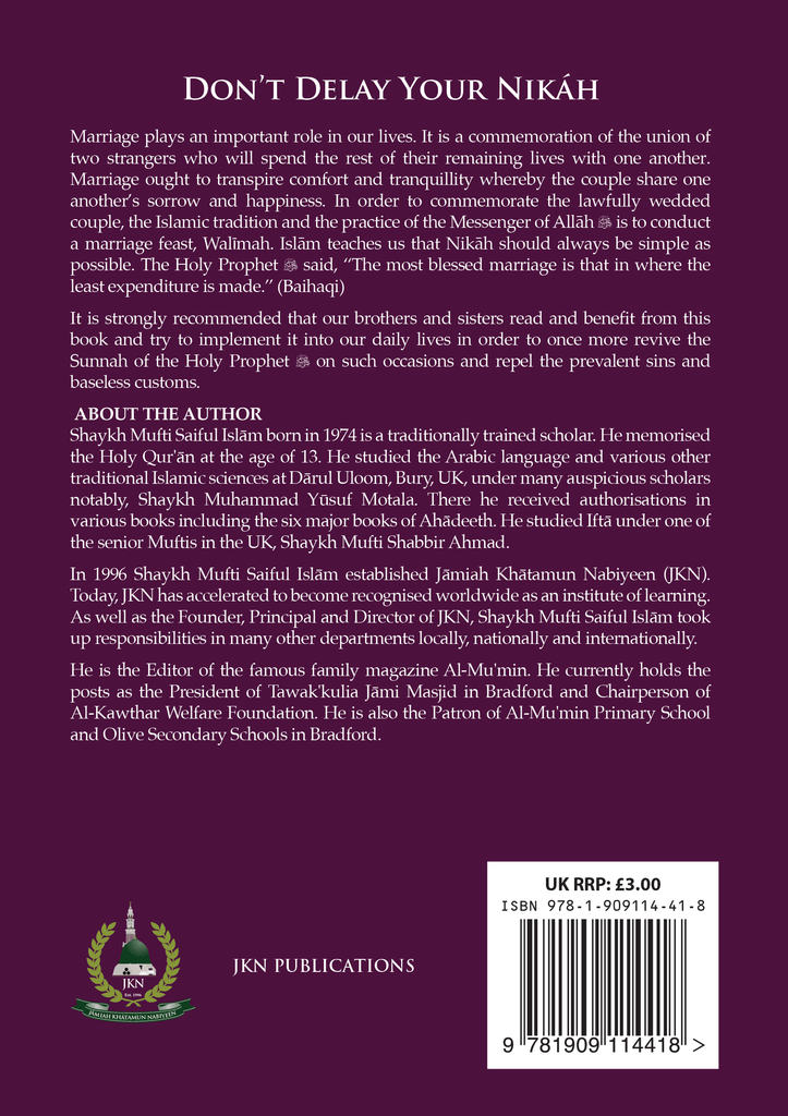 Don't Delay Your Nikah (Shaykh Mufti Saiful Islam)