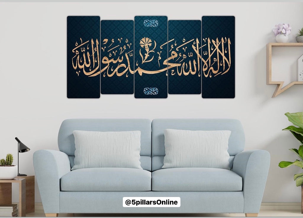 5pc Kalima Wall Art Digital Print on Wooden Frame