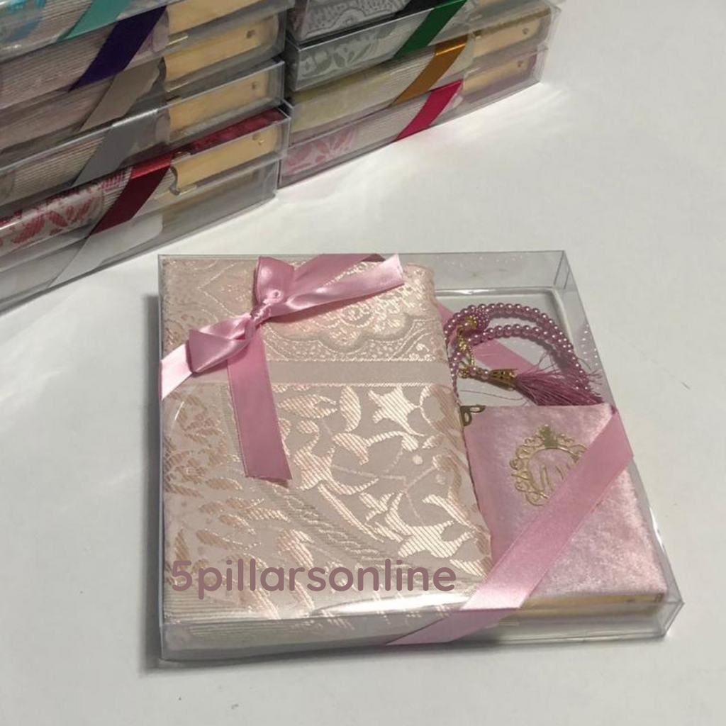 Luxury Velvet Quran, Tasbeeh, Prayer Mat Set (A6 Pink)