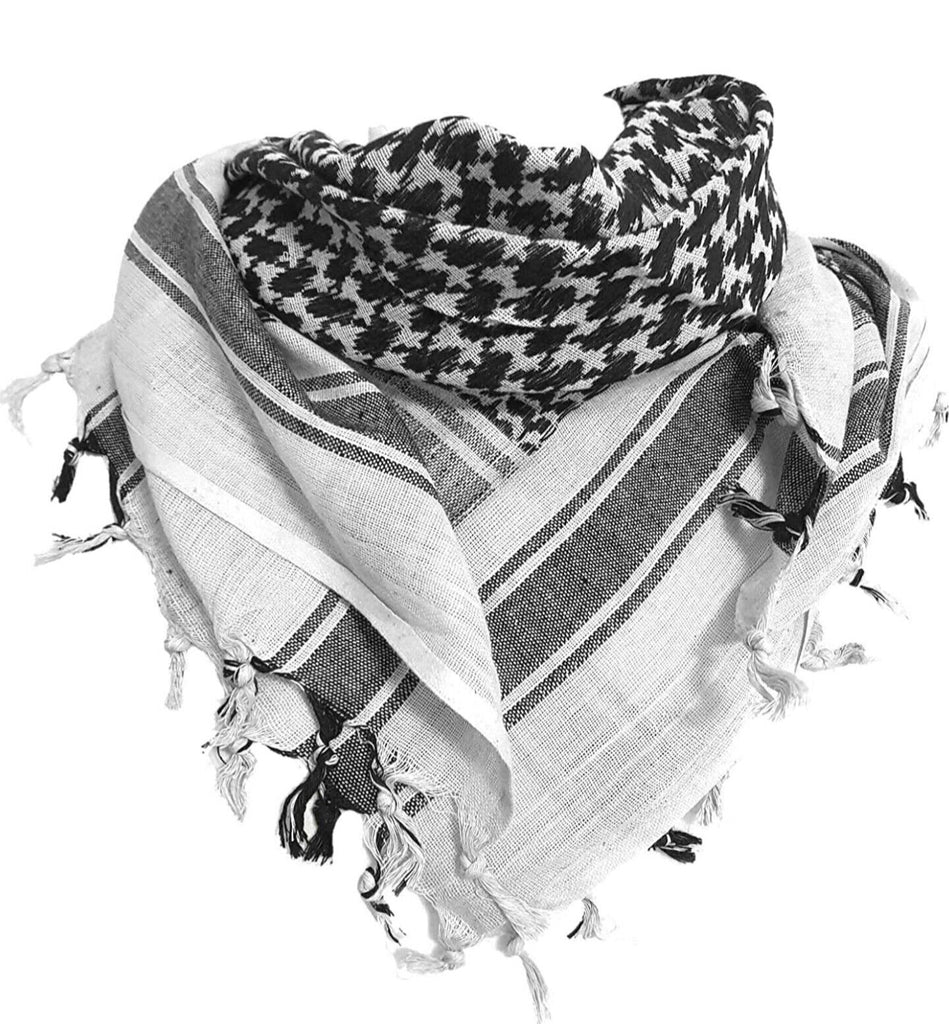 This scarf we call Palestinian Keffiyah today has a fascinating history dating back to Sumerians and Babyonians in Mesopotamia. It is also known as a shemagh scarf, Arab scarf, Palestianian hatta, yamegh and igal. Prophet Muhammad (SAW) used to wear shemagh as well. Donning shemagh has held many different meanings and uses over time and depending on location/culture. The symbolic meaning, color and keffiyah style vary from one country to another and even from one region to another. For instance, in Palestine, it's very common to see Palestinian keffiyah worn in solidarity protests and demonstration.