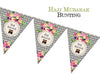 Hajj Mubarak bunting Geo is modern and vibrant with it's floral features. Decorate your home or work place with this stylish and reusable double sided Hajj bunting and welcome the Hajjis from their fantastic journey.